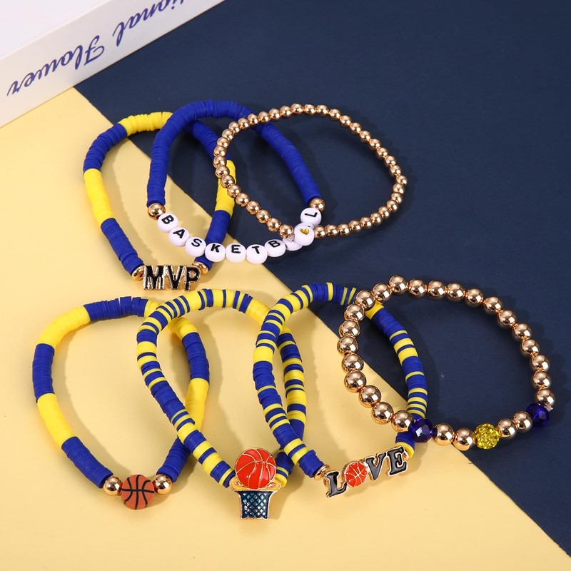 - Basketball Bracelets for Women: Celebrate your love for the game with this 7-piece basketball bracelets stack, designed to elevate every basketball game day outfit! Each set includes 2 gold bead bracelets and 5 vibrant clay beads stretch bracelets. Adorned with mini basketball charms, "BASKETBALL" letter beads, MVP pendants, and hoop-and-net charms, these sports bracelets scream basketball passion. Choose your team’s signature colors to create a stack that’s uniquely yours.