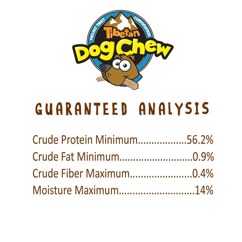 - OUR PROMISE: We are dedicated in bringing you natural alternatives for the health and well being of your dogs. Tibetan Dog Chews are High Protein, Long Lasting, Minimal Odor, Non Staining, No Preservatives, No Binding Agents, No Artificial Colors or Flavors, No Grains, No Gluten, a 100% Natural and close to being a "Certified Organic" product. If you and your dog are not fully satisfied with Tibetan Dog Chews, we will refund your purchase. No questions asked