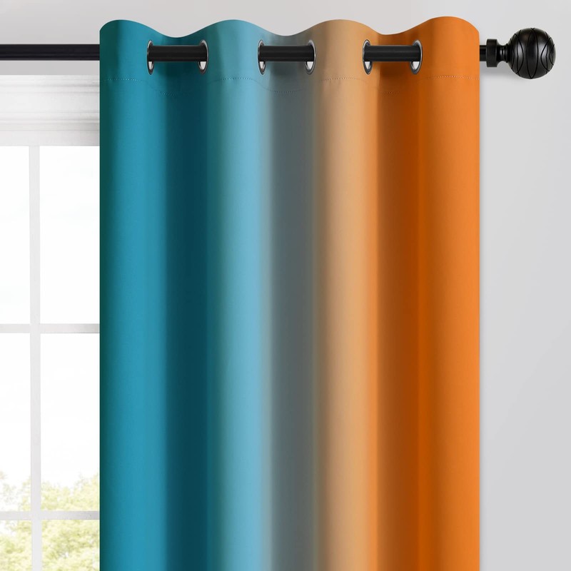 Yakamok Ombre Blue and Orange Curtains for Bedroom, Gradient Room Darkening Curtains, Grommet Thermal Insulated Light Blocking Window Drapes/Curtain for Living Room,52 x 72 Inch,2 Panels