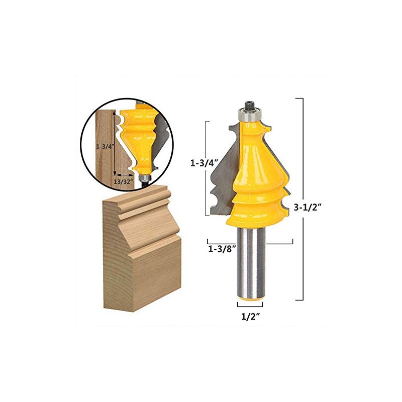 Yakamoz 1/2 Inch Shank Large Elegant Picture Frame Molding Router Bit Architectural Forming Milling Cutter Woodworking Tool