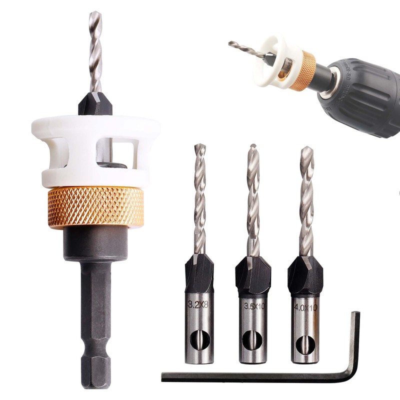• Replaceable Pilot Bits – Includes 4 sizes (1/8'' 7/64" Drill+5/16'' 82° Counterbore, 9/64" 5/32" Drill+ 25/64" 82° Counter-Bore) with easy-to-replace HSS drill bits, ideal for various screw sizes and wood types.