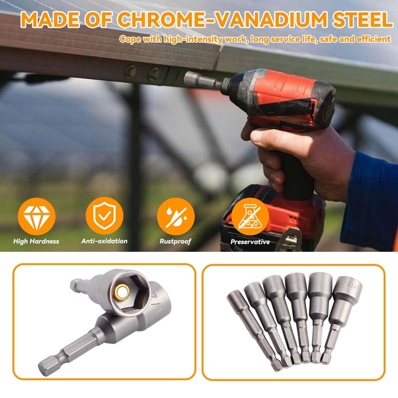 - 【Durable CR-V Steel Construction】 The power nut driver set made from premium chrome vanadium steel with heat treatment for enhanced hardness, wear resistance, and long-lasting performance.