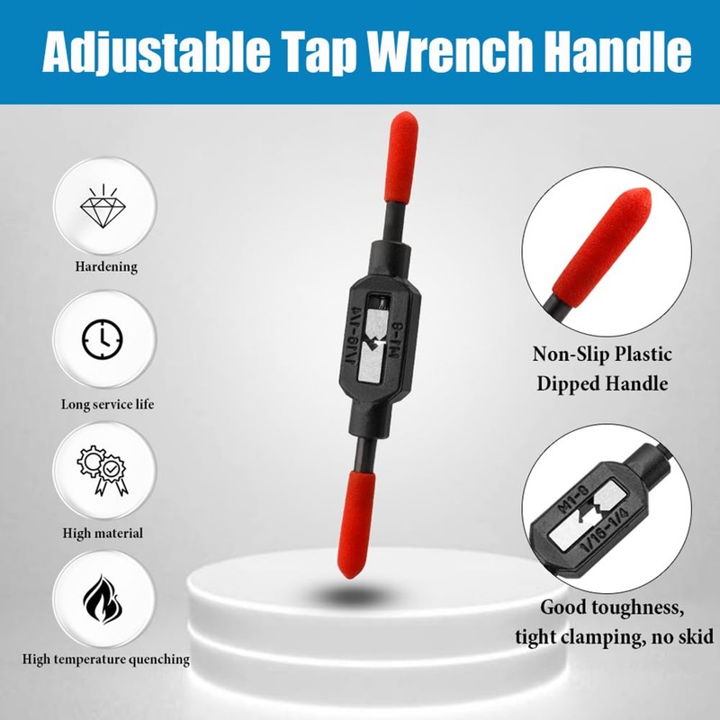 - Wide Tap Range Compatibility: Designed to fit Metric taps (M1-M8) and Imperial taps (1/16"-1/4" ), this adjustable tap wrench handle is perfect for a wide variety of threading and reaming applications.