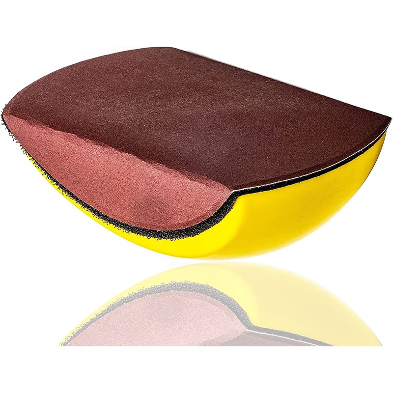 Yakamoz Hand Sanding Blocks are made from sturdy and flexible composite material and has a hook and loop base. It is designed to accept most 5 inch hook and loop orbital sanding discs in the market. It will work with any hole pattern of sanding disc or even no hole sanding discs. Your hook and loop paper will easily attach and easily come off of the sanding blocks when its time to change paper or grits.