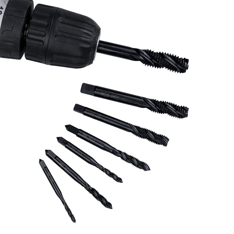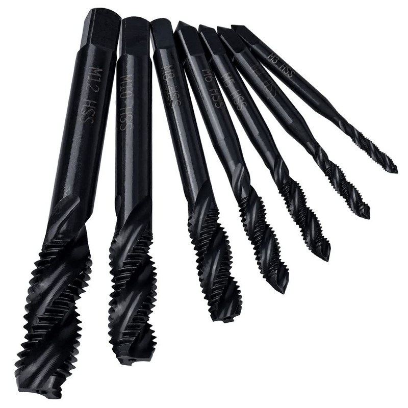 - 1. Metric Taps: 7 Different size tapping bits (M3 M4 M5 M6 M8 M10 M12), perfect for tapping new threads or repair damaged threads.