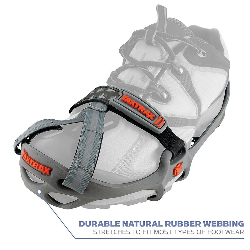 The Yaktrax RUN is the only traction device anatomically designed to meet the needs of runners braving the winter elements. Run naturally on packed snow and ice with the Yaktrax Run's combination of removable spikes and steel coils, providing 360° of unbeatable traction. Continue your training during the winter with the same stability you are accustomed to on dry surfaces. The Yaktrax Run can be worn in temperatures as low as ‑41° Fahrenheit. - MADE OF HIGH STRENGTH NATURAL RUBBER - 1.4 MM STEEL COILS - CARBIDE STEEL SPIKES - REFLECTIVE HEEL TAB AND PERFORMANCE STRAP OFFERS SAFETY - ANATOMIC RIGHT/LEFT DESIGN - SOLD AS A PAIR Size Guide: 5-8 UK (38-40 EU) = Small 8-10 UK (41-43 EU) = Medium 10-13 UK (44-46 EU) = Large 13+ UK (46+ EU) = X-Large