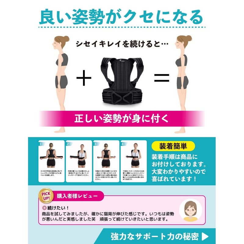 • Secures firmly from the waist: Supports your shoulders and lower back, so you can feel good posture. Even if you remove the shisei cleanly, you can be aware of the good posture and natural posture