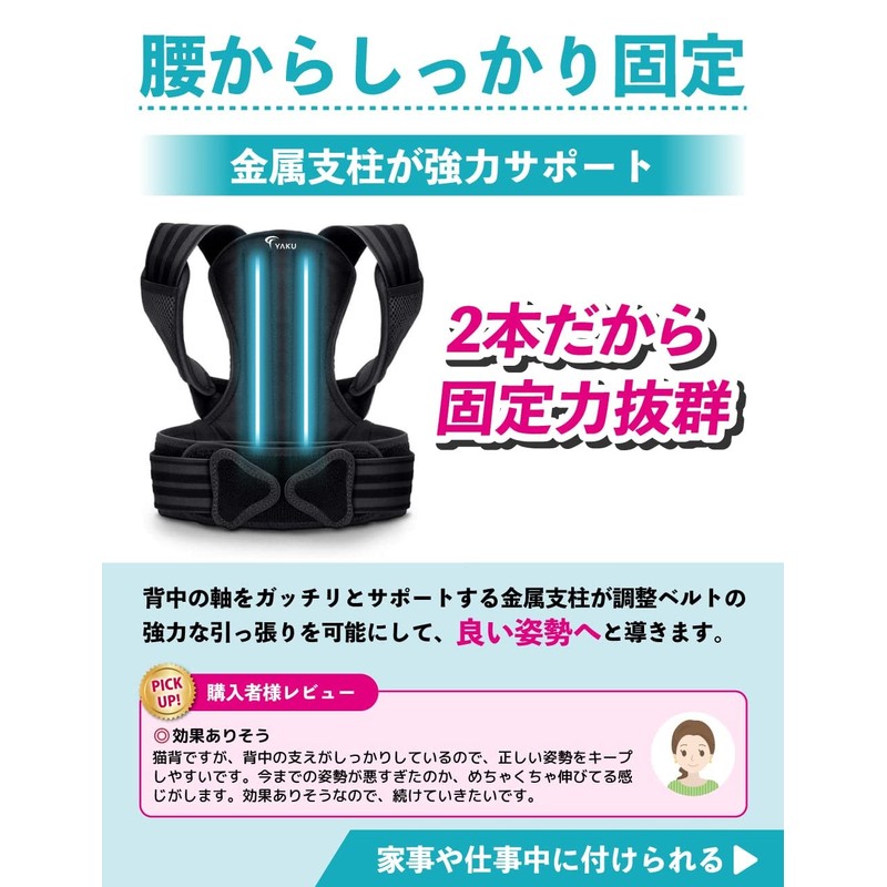 Naturally Promotes Good Posture: The two metal posts and strong belts are supervised by a physical the. Sisei corrects posture with a clean and correct posture. Secures firmly from the waist: Supports your shoulders and lower back, so you can feel good posture. Even if you remove the shisei cleanly, you can be aware of the good posture and natural posture. (Inconspicuous and includes underarm pads) Shisei Kirei can be worn under your clothes, so you can guide you in a good posture. It also comes with armpit pads for side and shoulder pain. We inspect the standards of Japanese inspection, so we provide not only replacement for initial defects but also for up to 12 months. Get yours today! Japanese Support You: While there are many Chinese sellers in the same genre, YAKU is a Japanese brand made by Japanese people. Please rest assured that the Japanese will quickly and carefully.