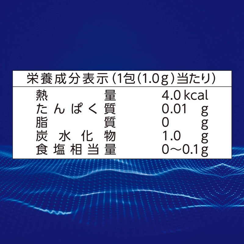 - 【栄養成分表示(1包/1.0g)当たり)】熱量4.0kcal たんぱく質0.01g 脂質0g 炭水化物1.0g 食塩相当量 0~0.01g 【原材料名】マルトデキストリン、ばれいしょデンプン、乳酸菌乾燥末(乳成分を含む)、ビフィズス菌乾燥末(乳成分を含む)、とうもろこしデンプン/増粘剤(プルラン)※通販限定商品