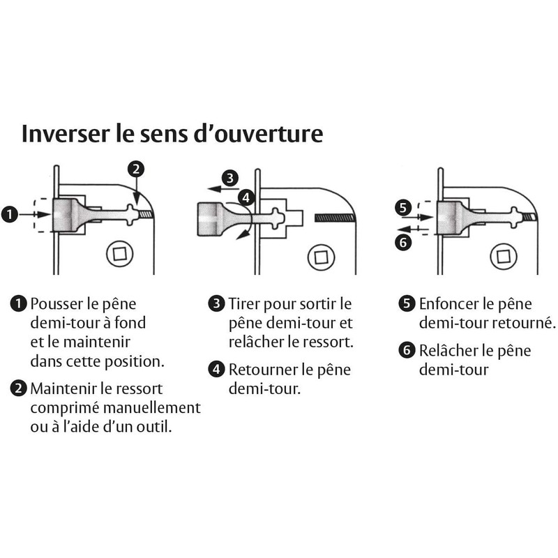 • The latch is reversible and can be easily rotated without dismantling the boot. The lock can then be attached to a right or left opening door. The latch is curved to minimize the noise when slamming. The latches are made of metal for strength and durability.