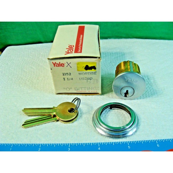 Yale Mortise Cylinder Lock 1152 1-1/4 US26D 2-Keys Satin NIB NOS Key-GD-Blank