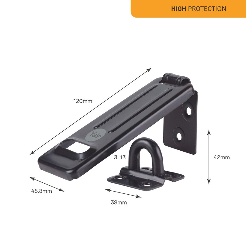 Yale - Y135B/120/BK- 120 mm Stahl Hasp - sichere Tore - Sicherheitsschuppen - hoher Schutz