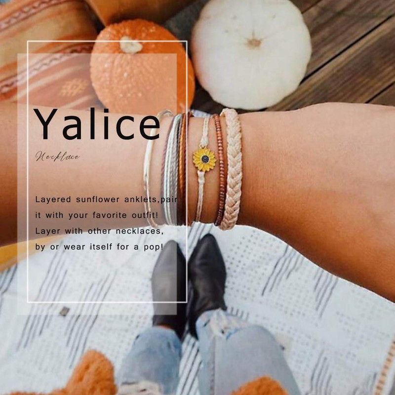 Yalice Multi-Layered Boho Anklets Flower Ankle Bracelet Daisy Rope Foot Chain for Women