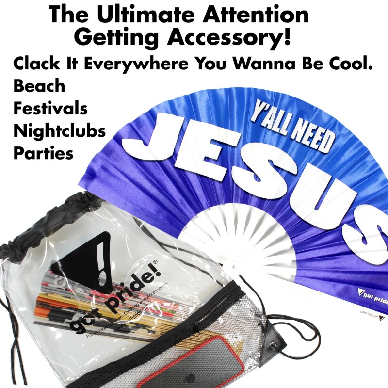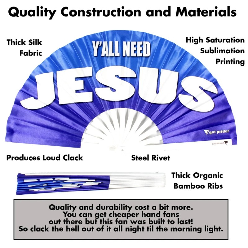Yall Need Jesus Large Bamboo Folding Clack Hand Fan for Line Dancing, Festivals