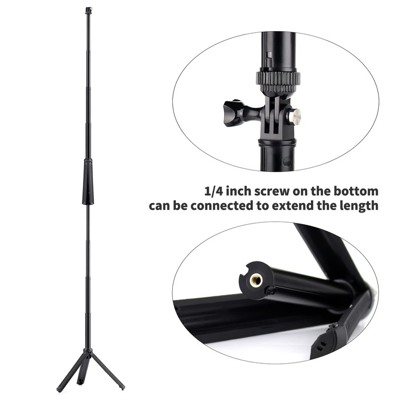- Features: The extension pole can be locked at any desired length from 8.5 to 28 inches. The standard 1/4 inch screw on the bottom can be connected to extend the length