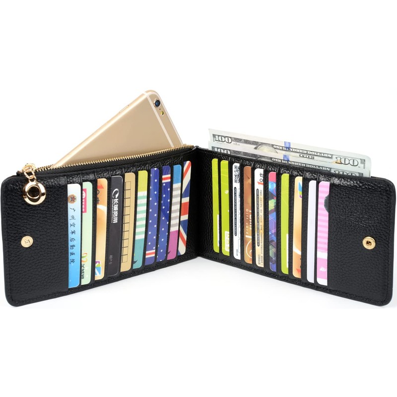 - With 20 card slots, an open pocket, and a zippered compartment for bills, cash, change and a slim cellphone. Its clear layout and bi-fold design are made to keep your cash & cards well-organized and easy to use.