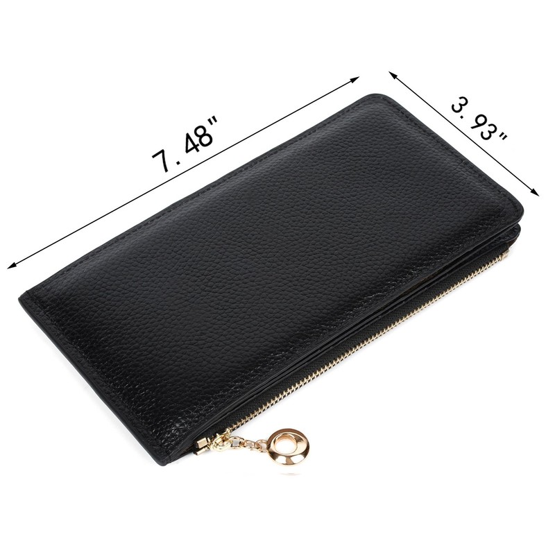 - Made of Cowhide Leather with a coating finish, luxury looking and durable. The gold-color hardware, heavy-duty zipper and detailed streamlined stitching brighten up the wallet.
