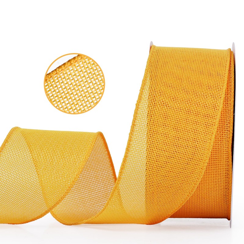YAMA Burlap Wired Ribbon, Yellow, 2-1/2 inch x 20 Yards, for Crafts, Wreath, Bow Making, Gift Wrapping, Christmas and Home Decoration