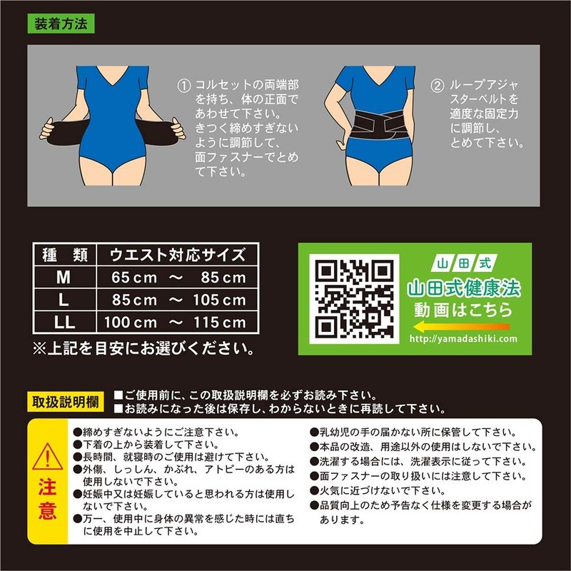 Yamada Style Lumbar Slim Corset, W Compression Belt, Size M (25.6 - 33.5 inches (65 - 85 cm)
