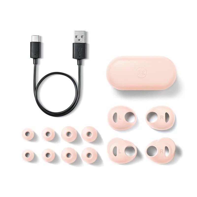 • Items delivered: Yamaha TW-E3A Wireless Earphones in pink, charging & carrying cases, ear sleeves S/M, ear tips XS/S/M/L, USB A-C cable, playback: Max. 24h (6h + 3 charges in case)