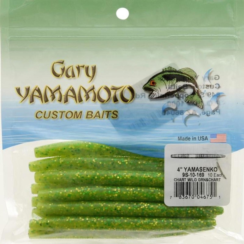 Yamamoto 9S-10-169 Senko Worm, 4"" 10pk, Chartreuse with Large, Chartreuse Green chartreus Flake