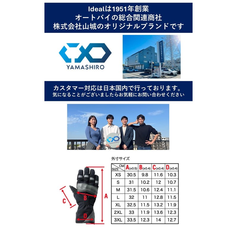 yamashiro IDEAL IDEAL Motorcycle Gloves Autumn/Winter Model ID-117 Revive Revive Gray XS Size ID117GY/XS