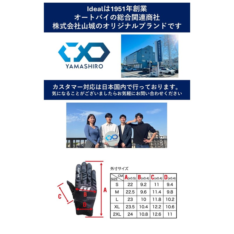 yamashiro Ideal Motorcycle Gloves Spring Summer Model ID-023 SHADE (Shade) Black 2XL ID023/BK/2XL