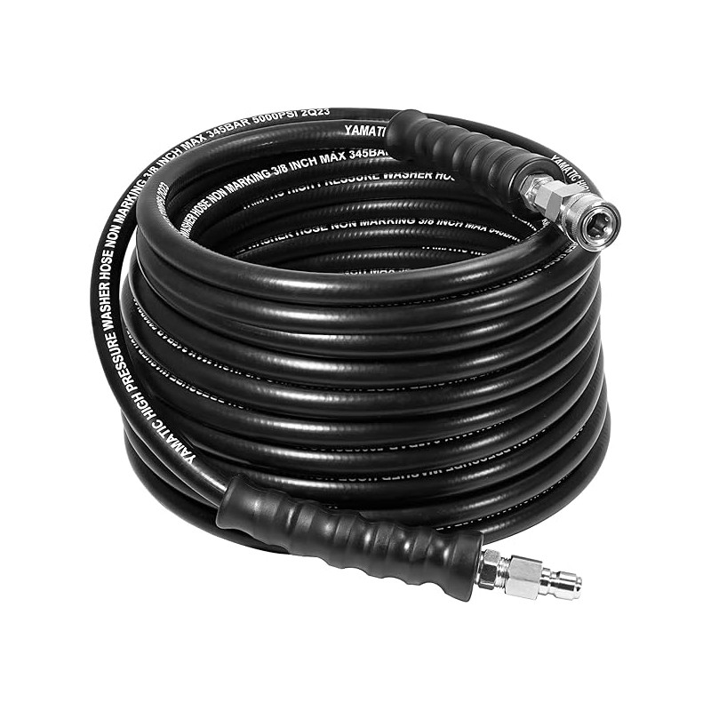 YAMATIC 3/8" Pressure Washer Hose 50FT with Stainless Steel Quick Connector, 5000PSI Rubber Power Washer Replacement Hose, Steel Wire Braided, Compatible with Simpson, Craftsman, Champion