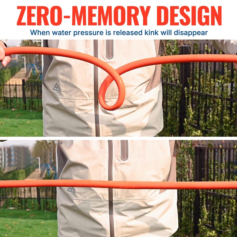 - Anti-Kink Technology - The fantastic flexible material allows the water hose to uncoil and lay flat as soon as first use and to snap back into shape to fight kinks as you drag it across the lawn, it features an industrial technology upgraded 360-degree swivel fitting, bringing your enhanced experience of kink resistance.