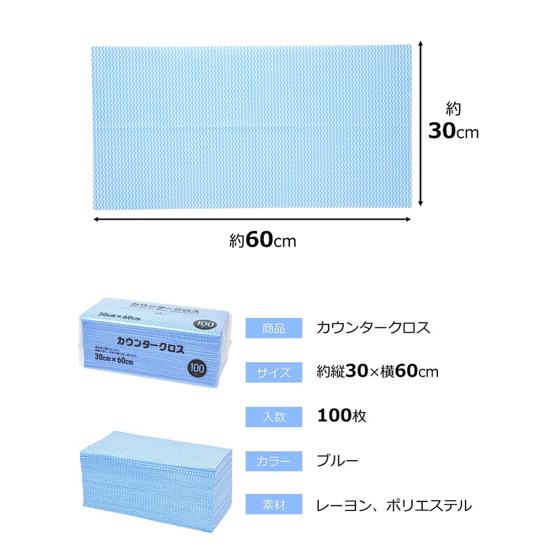 Yamato Bussan Counter Cloth, 100 Pieces, Blue, Approx. 23.6 x 11.8 inches (60 x 30 cm), Disposable Non-woven Fabric Table Duster, Commercial Use