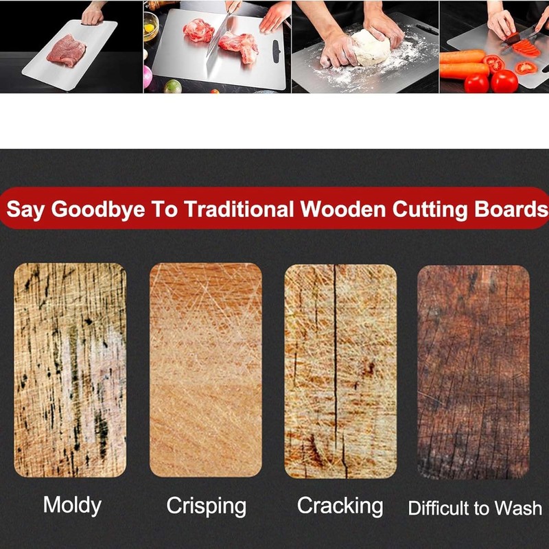 A titanium cutting board retains its shape and functionality for years to come, while wood or plastic boards can wear or crack over time.