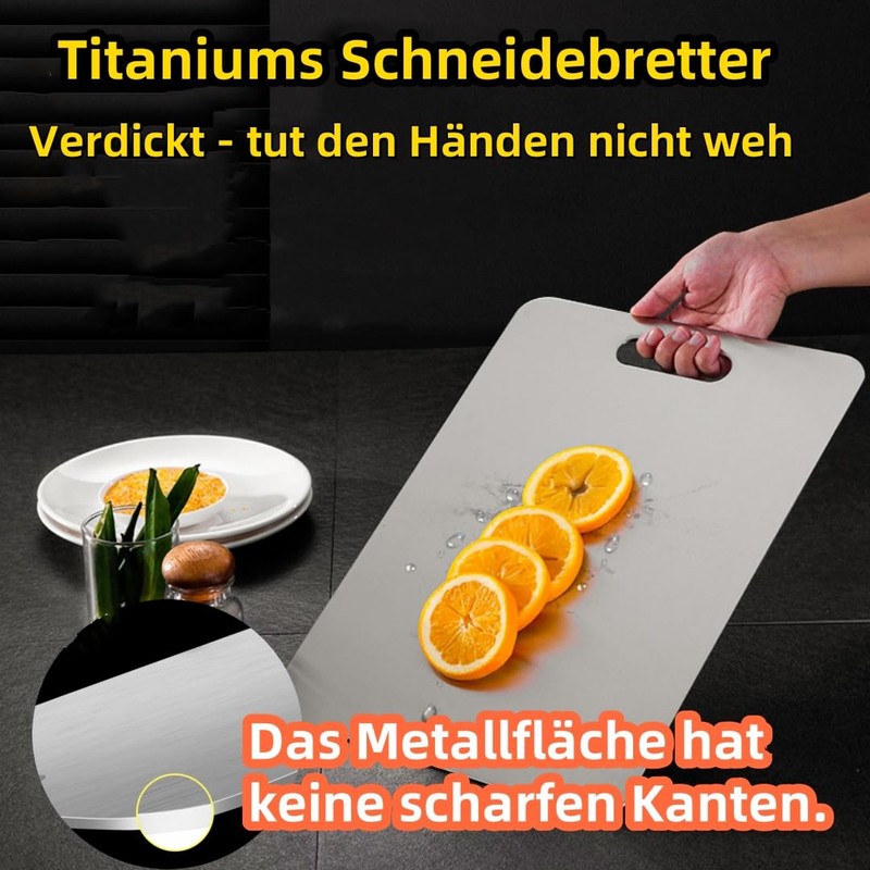 - EASY CARE & HYGIENIC: Titanium is an extremely hygienic material that does not absorb bacteria or odours. After use, the chopping board is easy to wipe and clean without losing quality. Unlike wooden or plastic boards, titanium is less susceptible to cracks and crevices that could harbor bacteria, making it the perfect choice for a hygienic kitchen.