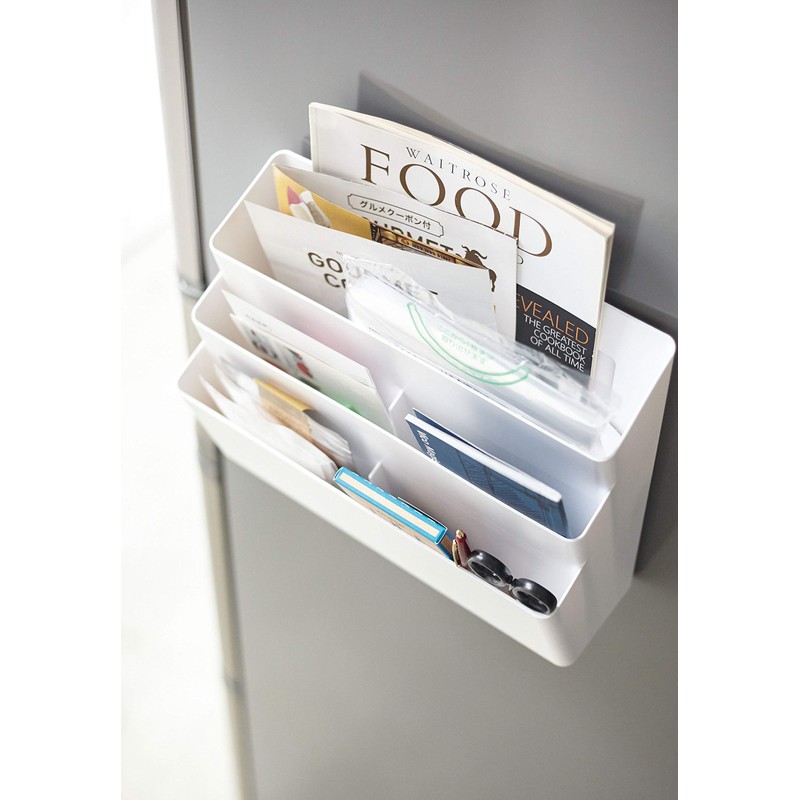 Yamazaki 4496 Tower Refrigerator Side Magnetic Storage Pocket, 3 Tiers, White, Approx. 12.6 x 5.1 x 9.6 inches (32 x 13 x 24.5 cm)