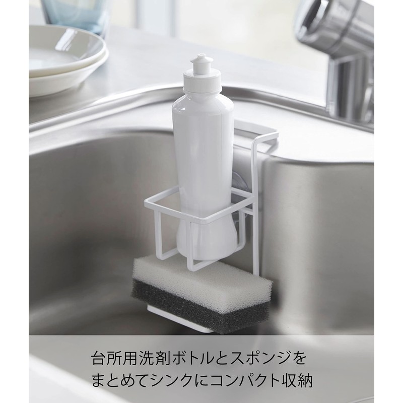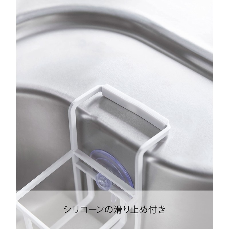 Yamazaki 4774 Suction Cup Sponge & Bottle Holder, White, Approx. W 2.6 x D 3.9 x H 5.9 inches (6.5 x 10 x 15 cm), Tower Sponge Holder, Recon Anti-Slip