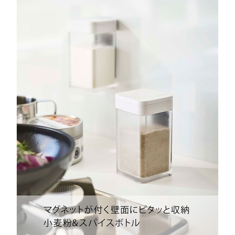 Yamazaki 4819 Magnetic Flour & Spice Bottle, Tower, White, Approx. W 2.3 x D 2.4 x H 4.1 inches (5.8 x 6 x 10.5 cm), Tower Condiment Container, Slide Open, Adjustable Amount,