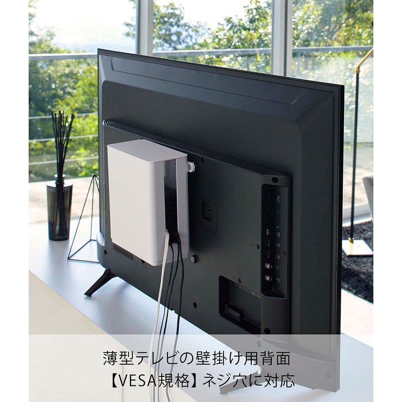 Yamazaki 4913 Stackable Slim Router Storage Case with Lid, White, Approx. W 3.8 x D 8.9 x H 8.7 inches (9.7 x 20.2 x 22.2 cm), Smart TV Back Storage, Stackable