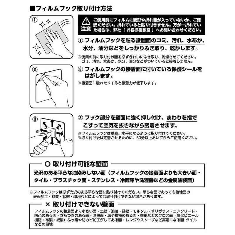 - [Applicable Places] Film hook: glossy flat non-stained surfaces (adhesive surface larger than film hooks) (tile, plastic surface, stainless steel) (metal painted surfaces such as refrigerators and washing machines) Tumbler: flat surfaces with magnets, steel walls