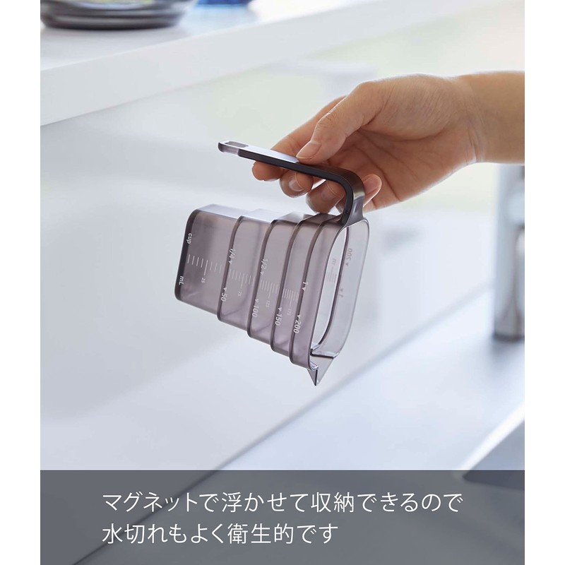 Yamazaki 6920 Magnetic Measuring Cup, 6.8 fl oz (200 ml), Black, Approx. 4.7 x 2.7 x 3.7 inches (12 x 6.8 x 9 cm), Tower Tower, Easy to See Memory From Above