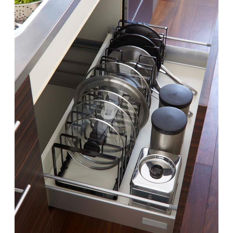 Yamazaki Home Tower Under Sink Pot Lids And Frying Pan Storage Kitchen Drawer Organizer Rack - Steel