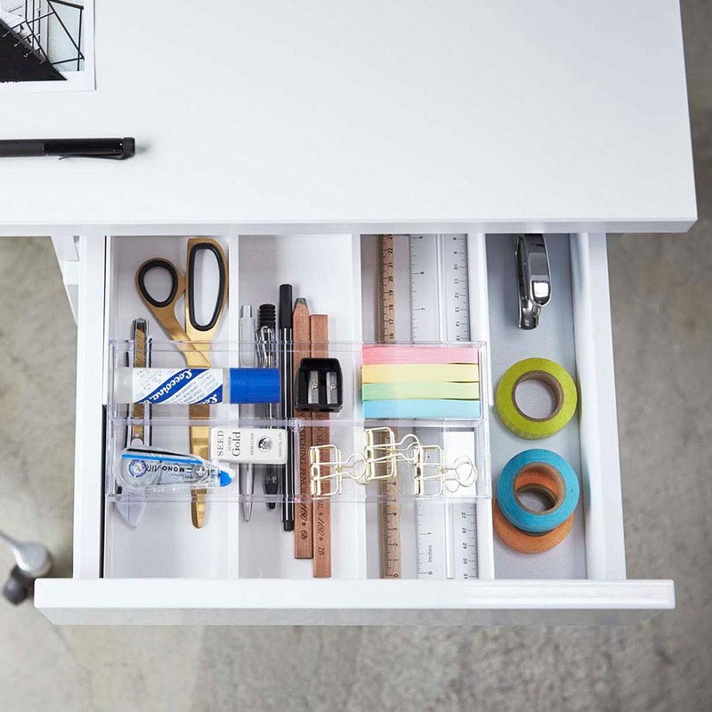 • Size (W x D x H): 9.8 x 9.7 - 17.7 x 2.2 inches (25 x 24.6 - 45 x 5.7 cm); Top Tray Size (W x D x H): 9.6 x 4.0 x 0.9 inches (24.5
