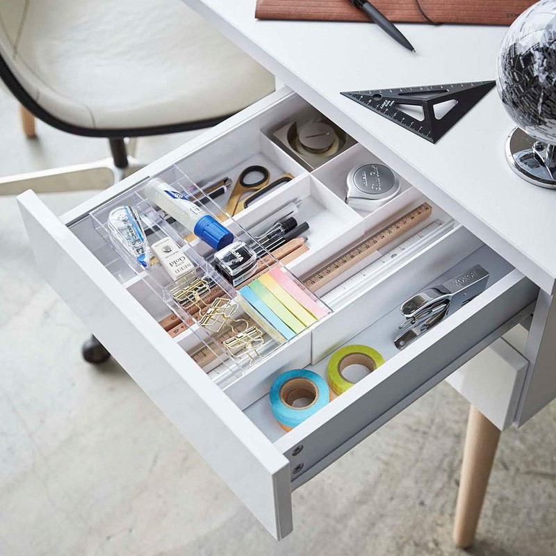 山崎実業(Yamazaki) 伸縮 & スライド デスクトレー ホワイト 約W25×D24.6~45×H5.7cm タワー tower 引き出し 収納ケース 伸縮式 3441