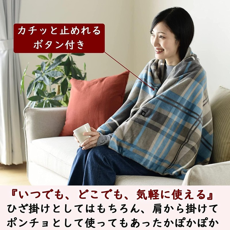 • (2-way electric blanket) This electric blanket is easy to use and can be hung on your lap or wrapped around. It can be used as a poncho with a snap button