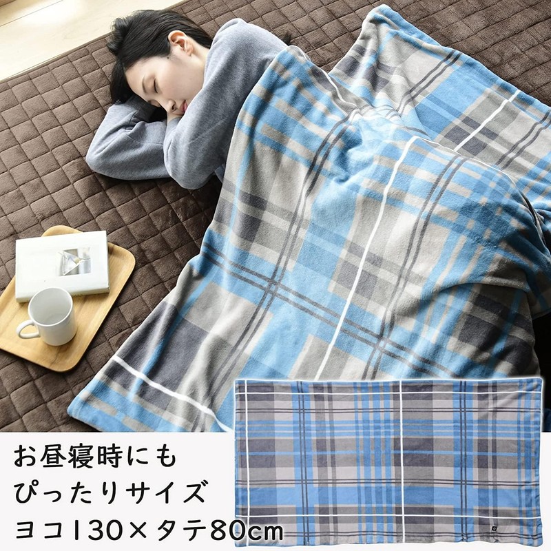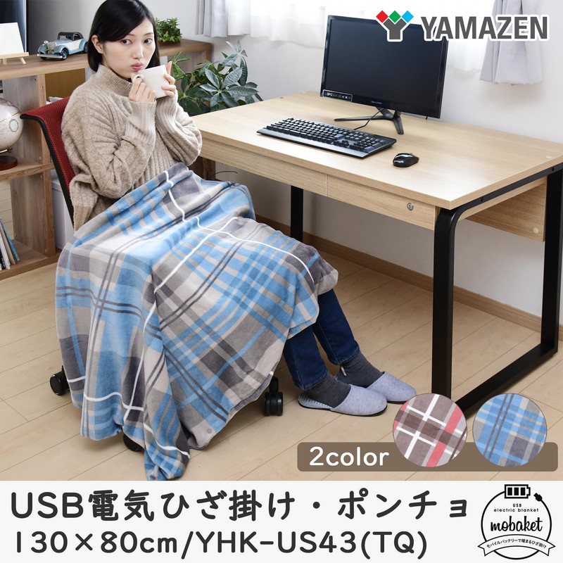 Yamazen YHK-US43(TQ) Electric Blanket, Throw Poncho, USB Blanket, 51.2 x 31.5 inches (130 x 80 cm), Auto Off Timer, Washable, Should, Checkered Pattern, Blue