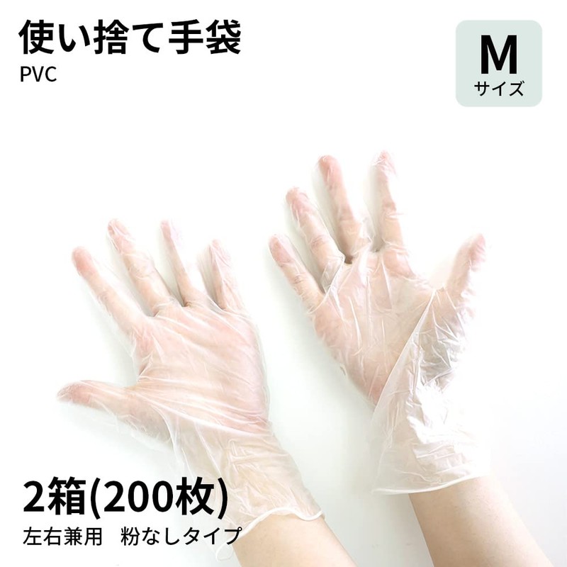 - Product Specifications: M size (total length 9.1 inches (230 mm), palm 3.7 ± 0.2 inches (95 ± 5 mm); thickness: 0.08 ± 0.03 mm); Material: PVC; Powder free; Color: Clear; Set of 2 boxes