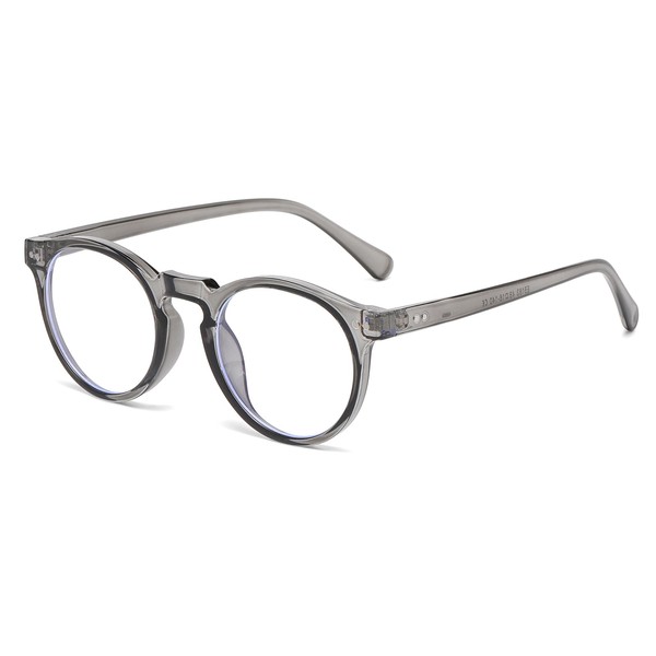 YAMEIZE Blue Light Blocking Glasses for Women - Men Small Round Blue Light Glasses Computer Gaming Glasses, grey transparent