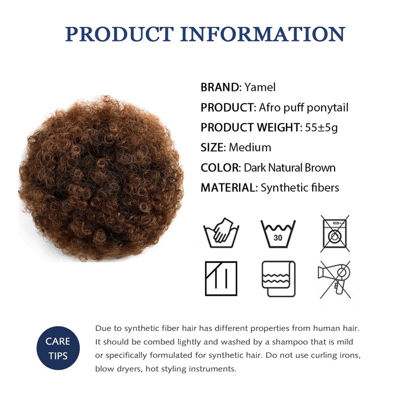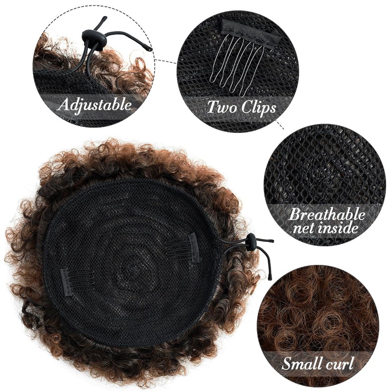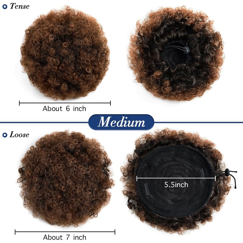 • FAST INSTALL & ADJUSTABLE ♥ Just a few seconds, your hair style can be changed. Put your own hair into a bun, attach the Afro Puff Ponytail with drawstring and combs, then you can go out of the door! It also can be adjusted to a low or high ponytail as your personal preference. 2 reinforced combs make the hairpiece stable, you will get a cute and young look.