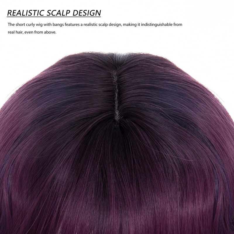 Yamel Short Hair Wigs Bob Wig Short Curly Wig with Bangs Ombre Purple Short Wigs for Women Daily Use Cosplay Wig