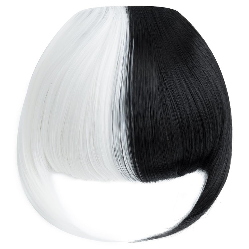 Yamel Synthetic Black and White Flat Bangs Hair Extensions Clip-in Bangs for Women