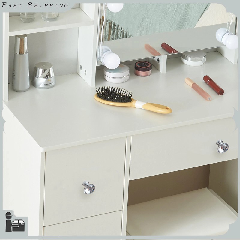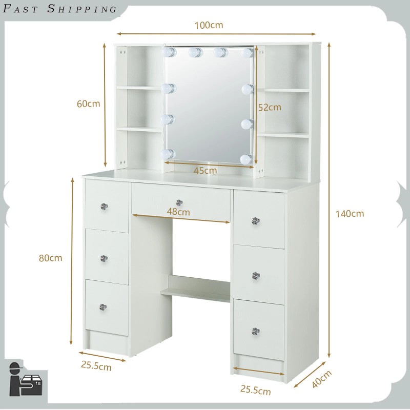 Yamissi Large Vanity Makeup Table with 10 LED Lighted Mirror and 7 Drawers Dressing Desk