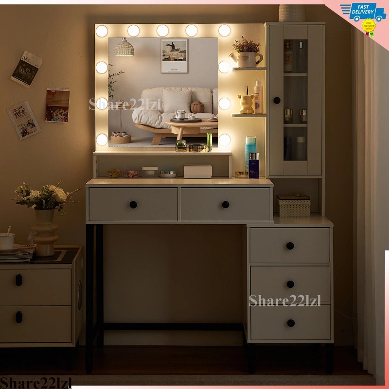 - Features: Without Stool, With Mirror, Flat Pack, Hidden Storage, With Drawers, With Shelves, 11 led bulbs